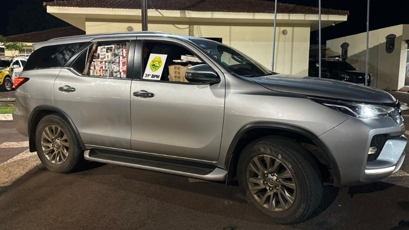 Após acompanhamento até o município de Jesuítas, o motorista perdeu o controle e colidiu com um tubo de concreto. Ao tentar fugir a pé, foi contido pela equipe. No veículo, foram encontrados cigarros de origem estrangeira. A placa do Toyota SW4 estava adulterada.