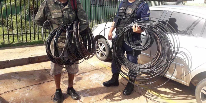 Conforme o registro, um dos abordados confirmou imediatamente que ambos estavam subtraindo os fios. O outro utilizava uma jaqueta de uma empresa de telecomunicações e alegou prestar serviços para outra companhia do setor, porém não apresentou qualquer identificação funcional nem ordem de serviço que comprovasse a atividade.
