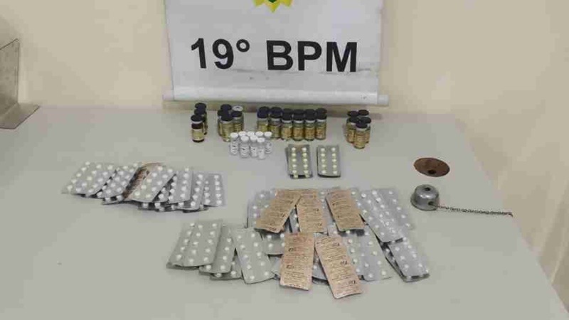 Durante a revista nas bagagens, os policiais localizaram, na mochila diversos frascos e cartelas de substâncias anabolizantes e medicamentos de uso controlado.