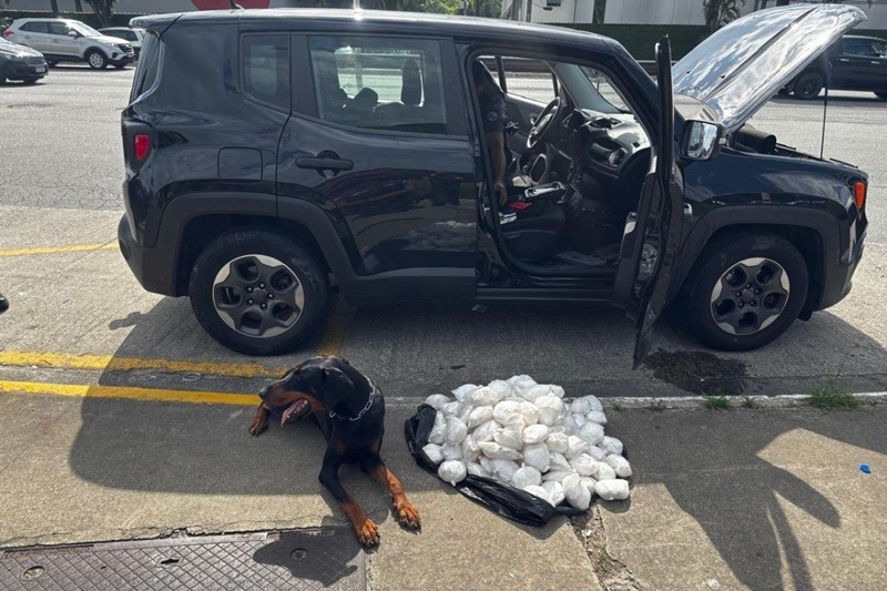 Durante a fiscalização, o cão farejador Colt sinalizou a presença de entorpecentes no interior do automóvel.