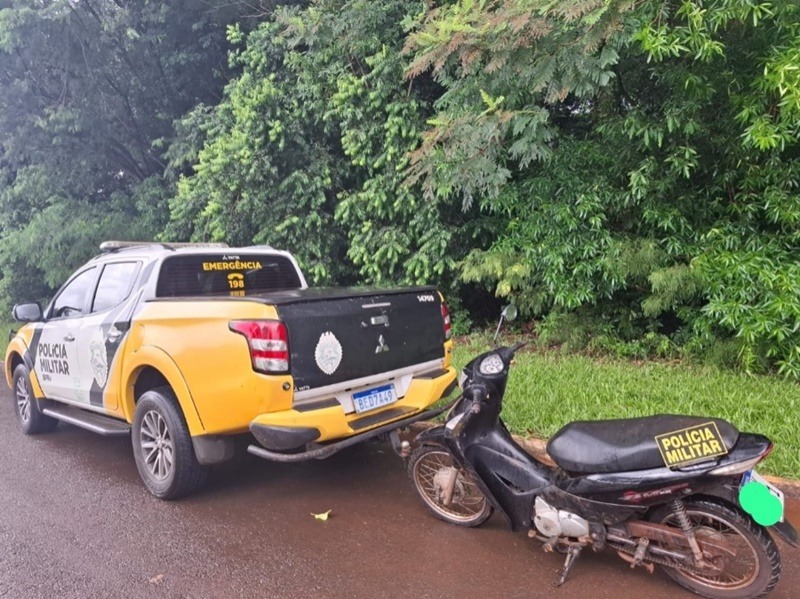 No local, foi encontrada uma motoneta Honda Biz 125 ES, de cor preta, emplacada no município de Cafelândia-PR. Após consulta aos sistemas policiais, foi constatado que o veículo possuía indicativo de furto registrado na cidade de Toledo, conforme Boletim de Ocorrência (B.O) lavrado no dia 31 de outubro de 2025 na 20ª Subdivisão Policial de Toledo (20ª SDP).