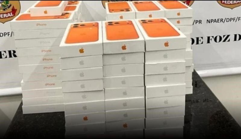 Durante a inspeção, foram encontrados cerca de 100 celulares da marca Apple, modelo iPhone 17 Pro Max, todos sem comprovação de origem legal.
