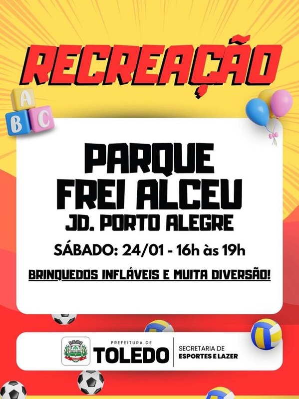 Para aproveitar as férias, mais uma edição do RecreAção será realizada neste sábado (24) no Jardim Porto Alegre. A ação é organizada pela Secretaria Municipal de Esportes e Lazer (Smel) e será realizada no Parque Frei Alceu das 16h às 19h. A participação é gratuita e aberta a toda a população, que pode trazer cadeiras e aproveitar a tarde.