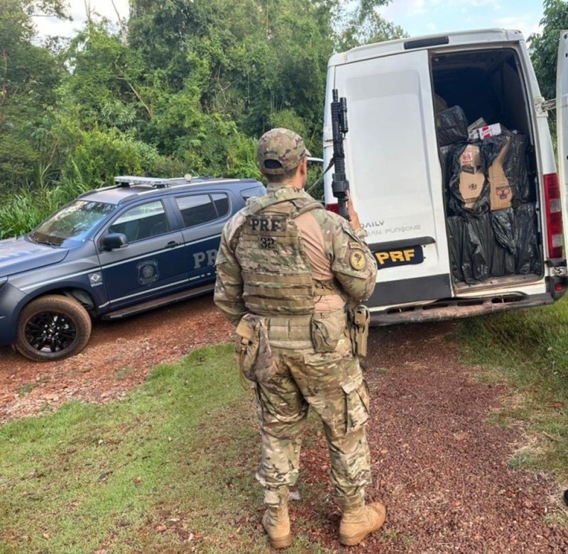 Durante a verificação, os policiais constataram que a van estava completamente carregada com cigarros de origem estrangeira.