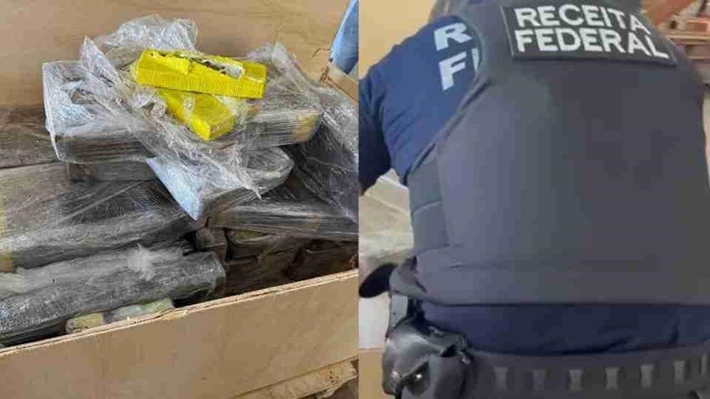 No local, os servidores encontraram aproximadamente 235 quilos e 700 da substância escondidos dentro de uma grande caixa de madeira.
