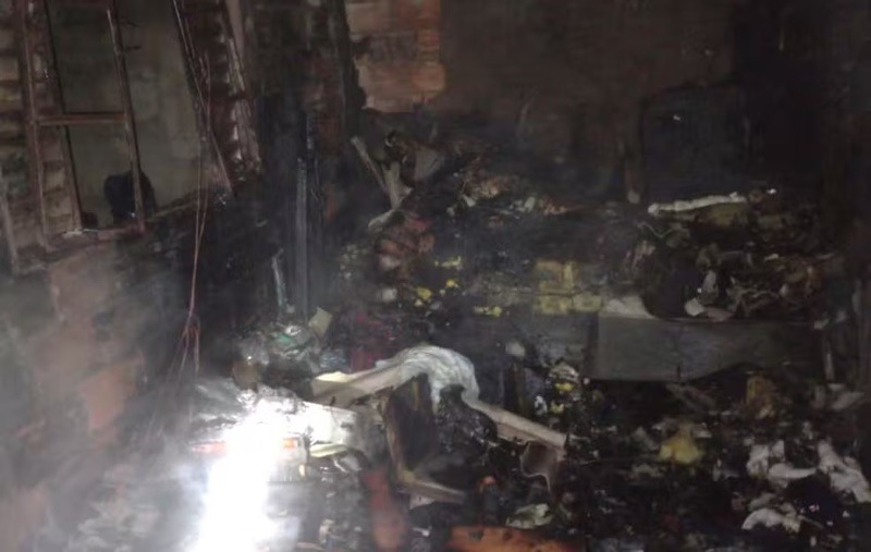 O Corpo de Bombeiros foi acionado, mas as chamas consumiram completamente o imóvel.