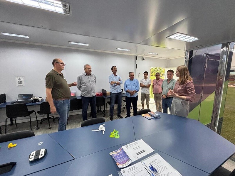 Com estrutura itinerante voltada à difusão do conhecimento e ao fortalecimento da democracia digital, a “Carreta da Inovação” está estacionada no Parque Ecológico Diva Paim Barth, em frente à Usina do Conhecimento.