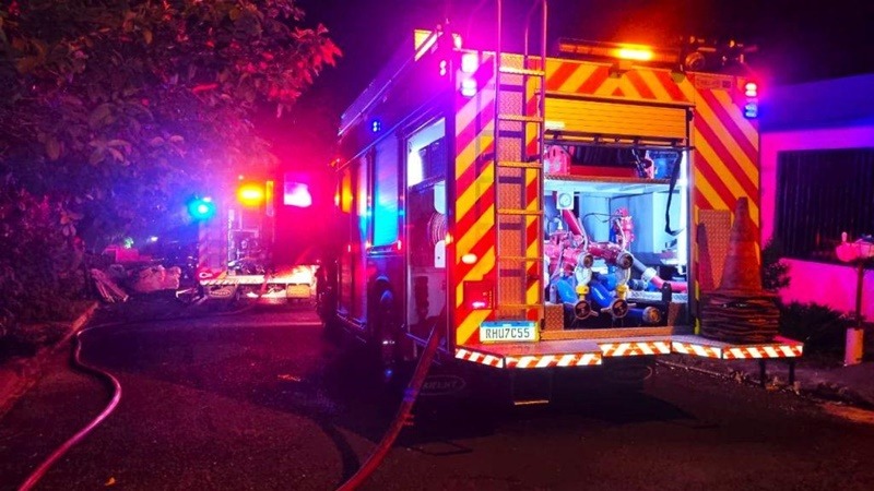 quipes do Corpo de Bombeiros estão mobilizadas neste momento para combater um incêndio de grandes proporções em uma área residencial na Rua Carnaúba, no bairro Brasmadeira, na região norte de Cascavel.