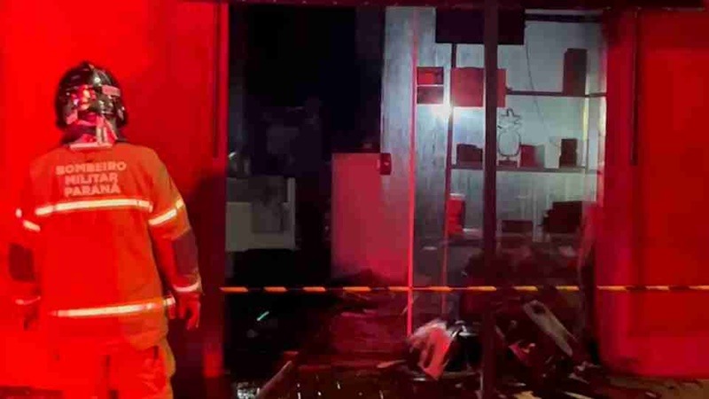Um incêndio registrado na madrugada de hoje destruiu uma loja de assistência técnica e danificou uma farmácia na Rua Xavantes, no bairro Santa Cruz, em Cascavel.