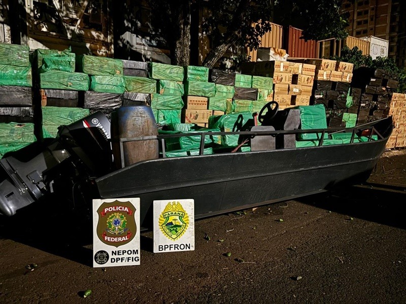 Embarcação veículo e 30 mil maços de cigarros contrabandeados são apreendidos em Itaipulândia