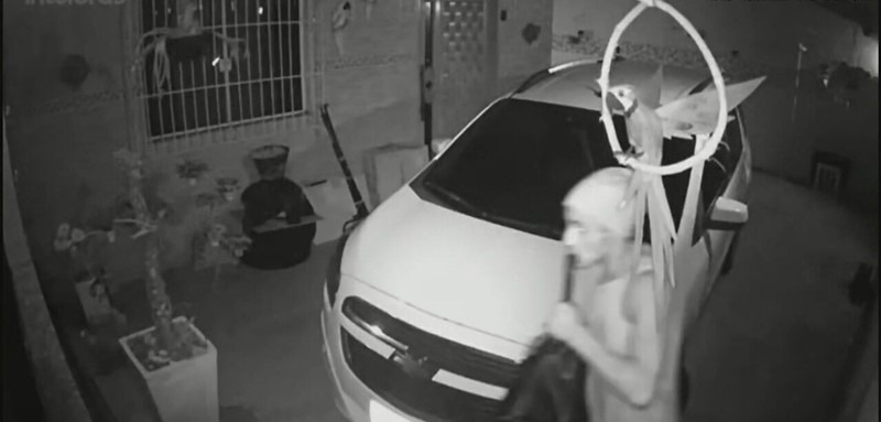 Ao levantar para verificar, o morador se deparou com um ladrão trajando casaco com capuz no interior da casa.