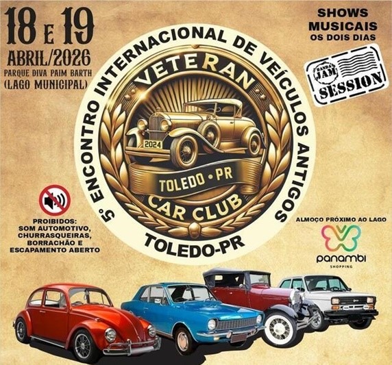 Está chegando a 5ª Edição do Encontro Internacional de Veículos Antigos de Toledo. Nos dias 18 e 19 (sábado e domingo), o evento reunirá cerca de 1,5 mil automóveis no Parque Ecológico Diva Paim Barth. Organizado pelo Veteran Car Club de Toledo, o encontro atrai entusiastas e colecionadores de carros antigos de diversas regiões do Brasil e de outros países.