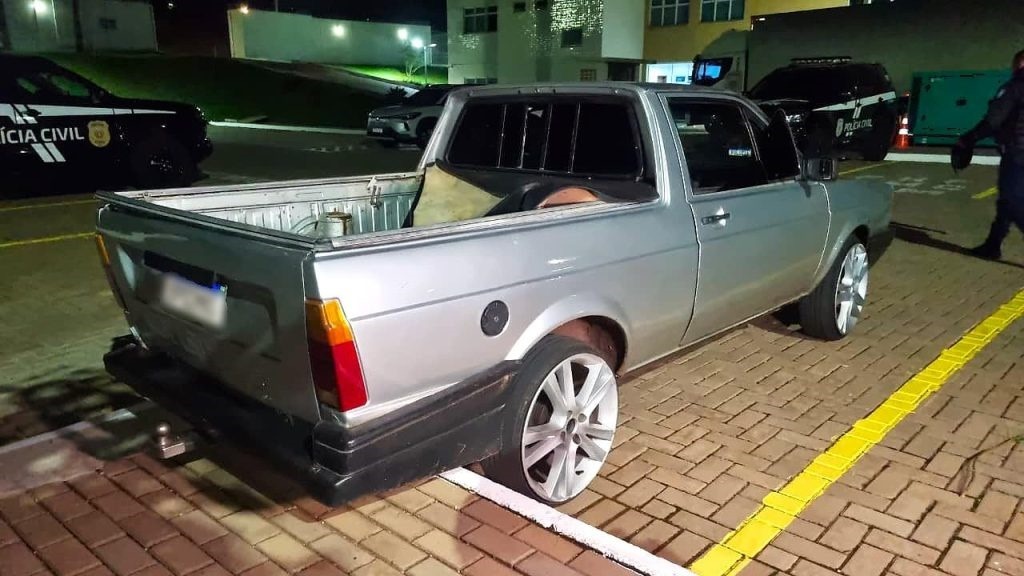 Uma picape Saveiro recuperada na madrugada de hoje , em Cascavel, pode ter sido utilizada em um arrombamento registrado na cidade de Toledo após o furto.