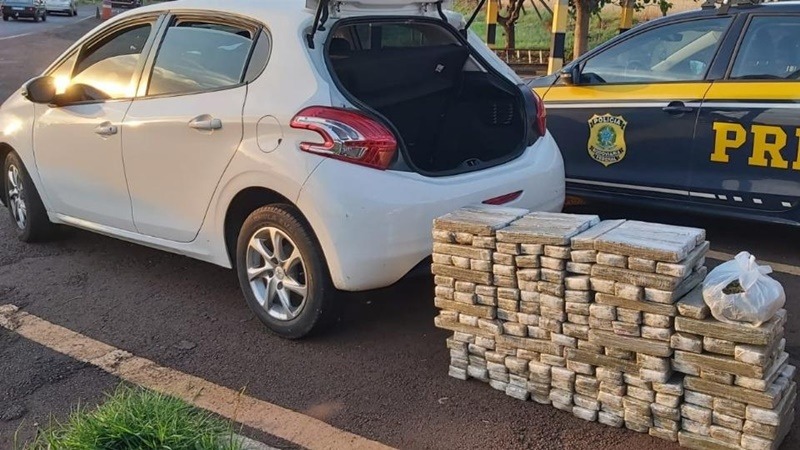 A Polícia Rodoviária Federal apreendeu 122 quilos de maconha e 800 gramas de “capulho” durante fiscalização no km 642 da BR-277, em Céu Azul.