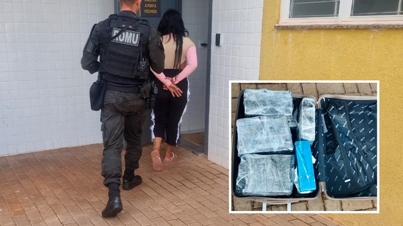 Durante patrulhamento de rotina pelo local, os agentes abordaram a suspeita e, ao revistarem suas bagagens, encontraram aproximadamente 40 quilos de substância análoga à maconha, distribuídos em duas malas.