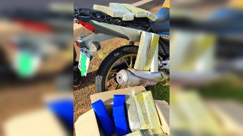 Durante a abordagem a uma motocicleta Honda CG 160 Titan, conduzida por um morador de Umuarama de 39 anos, os policiais encontraram uma caixa de papelão na garupa do veículo. Após vistoria, foram localizados 48 tabletes de maconha, totalizando 30 quilos e 150 gramas da droga.