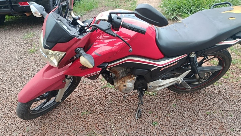 Durante a verificação, foi identificado o condutor, habilitado nas categorias A e B, que pilotava uma motocicleta Honda CG. Ao inspecionar o veículo, a equipe constatou que o lacre da placa estava violado e que os números de chassi e do motor haviam sido suprimidos. Além disso, a consulta nos sistemas apontou divergência na cor registrada: a placa indicava cor preta, enquanto a motocicleta encontrava-se na cor roxa.