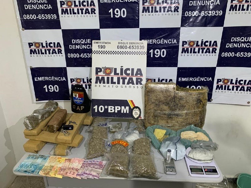 Na sequência das buscas foram encontradas porções de cocaína, num total de 136 gramas, além de duas balanças de precisão e dinheiro.